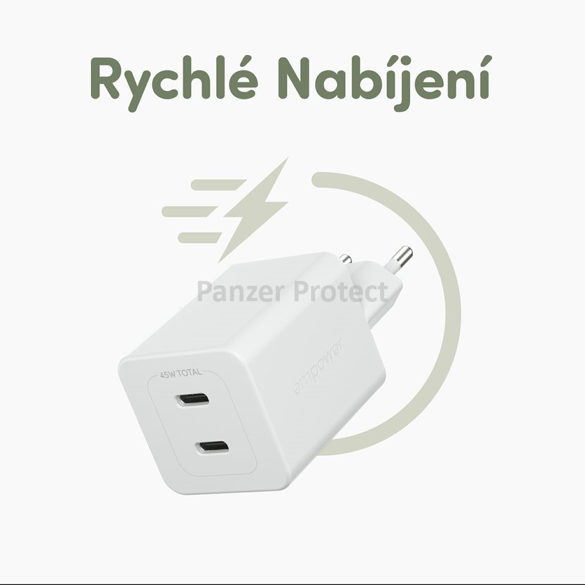 PanzerGlass empower nabíječka Turbo GaN 45 W 2x USB-C, bílá